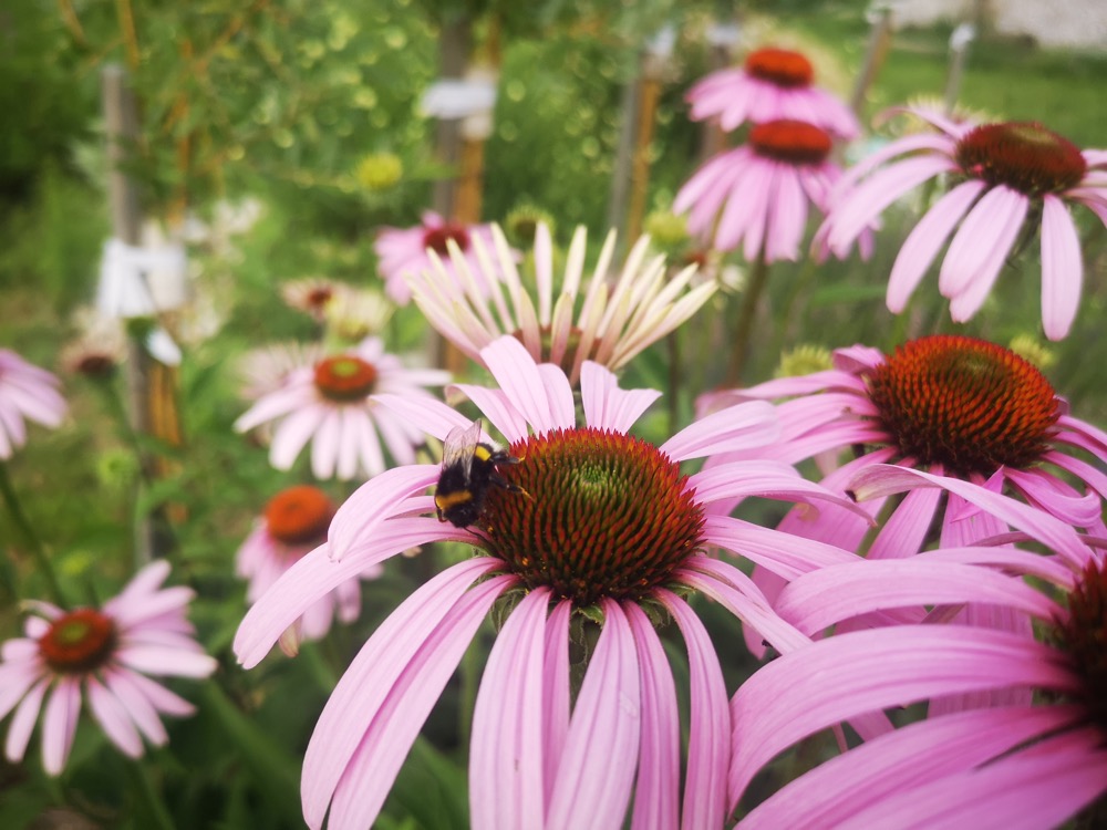 Roter Sonnenhut (Echinacea purpurea), Goldsturm-Sonnenhut (Rudbeckia fulgida) oder Fetthenne (Sedum-Telephium Hybr.) sind nur einige Beispiele für Stauden, die über den Winter standfest sind. In ihren Halmen und zwischen den Blättern überwintern viele Insekten und die umgeknickten Stiele wirken wie eine wärmende Decke für die Überwinterungsorgane im Boden.