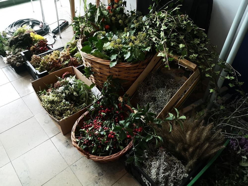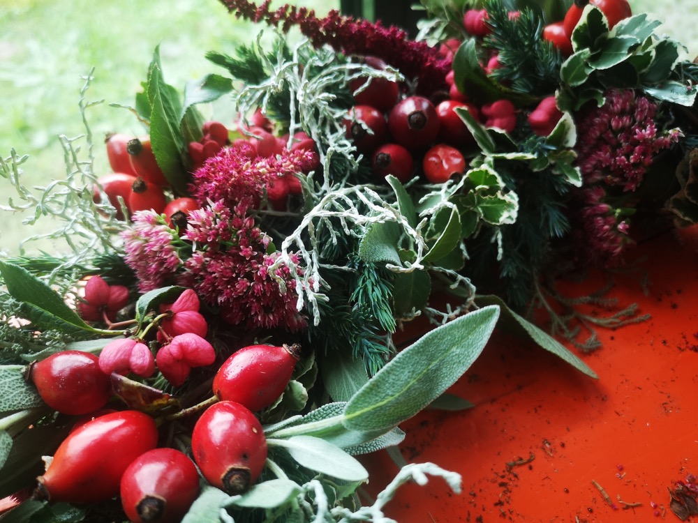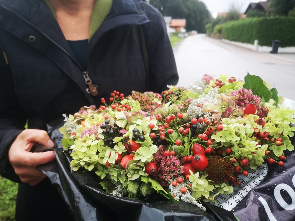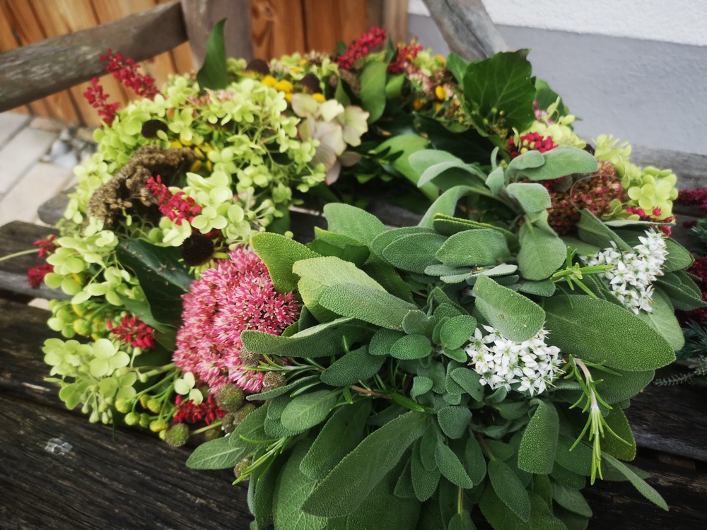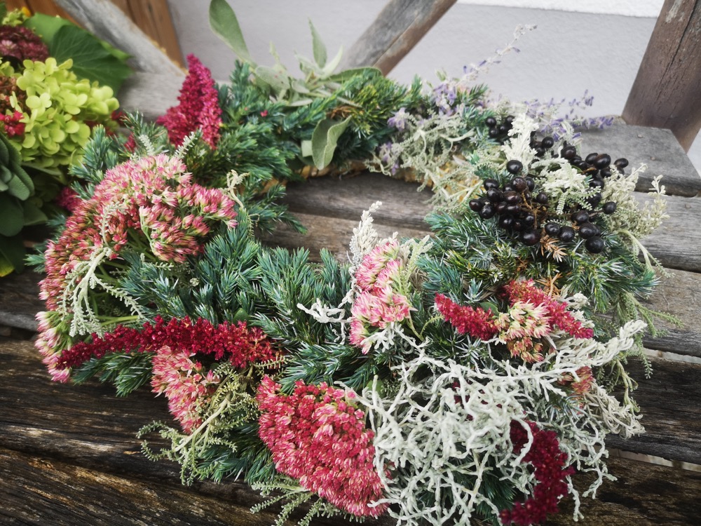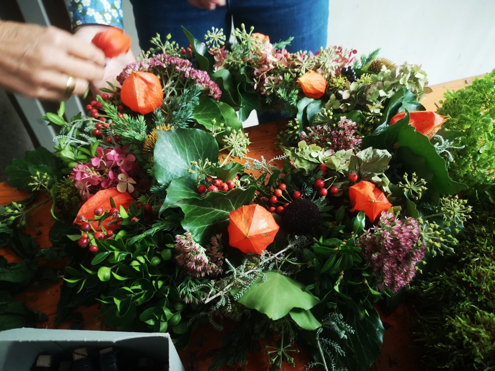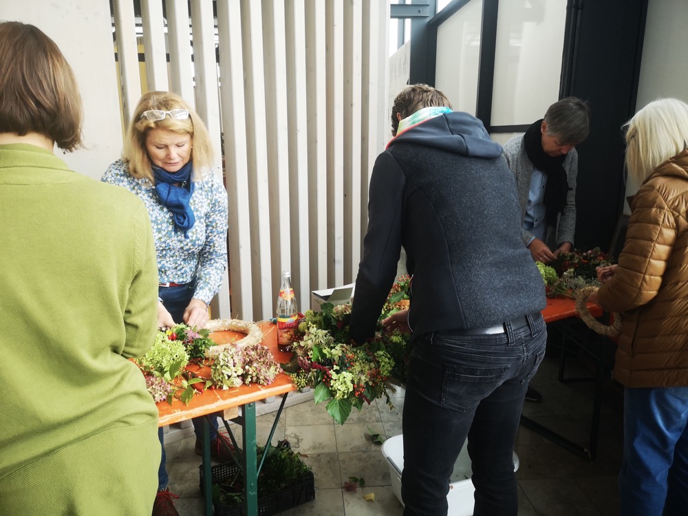 Beim jährlichen Pfarrfest in Soyen bietet der Gartenbauverein ein gemeinsames Binden von Herbstkränzen an. Mit verschiedenen gesammelten Materialien aus unseren Gärten entstehen farbenprächtige Kränze für Türen und als Tischschmuck.
