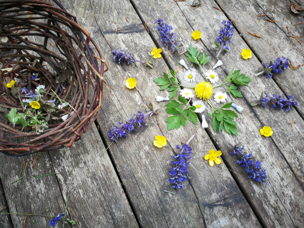 Im Frühjahr und Sommer findet ihr in euren Gärten besonders viele schöne Blüten. Bevor ihr sie pflückt, fragt bitte eure Eltern, wo das Sammeln im Garten erlaubt ist. Oder ihr nehmt einen Korb bei einem Spaziergang mit und pflückt in Wald und Wiese.