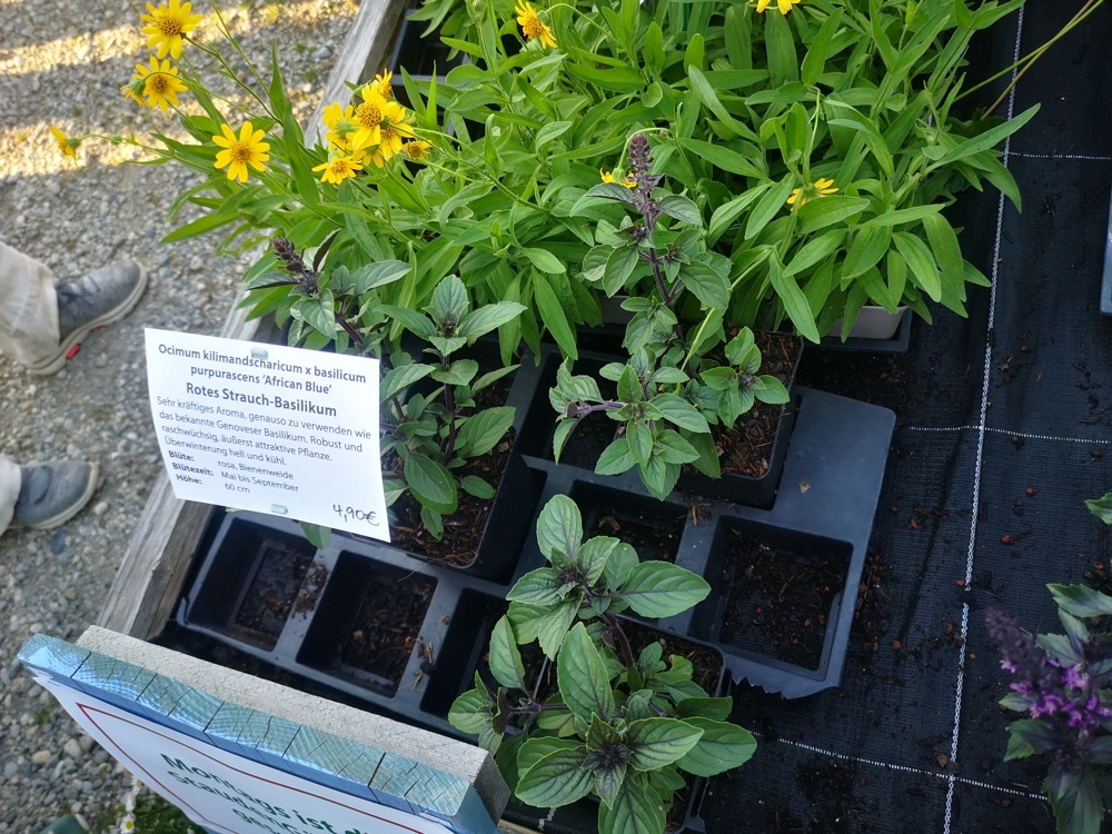 Im Eingangsbereich, wo Neuheiten und Pflanzen der Saison angeboten werden, stellte er auch die vielen Sorten des Basilikums vor.