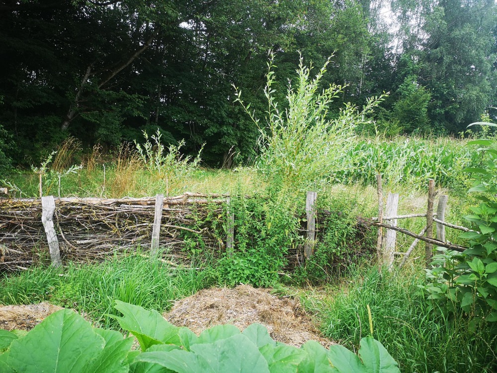 Es ist ein gut strukturierter Garten, mit Zäunen, Ecken und Räumen, die durch ihre Funktion klar definiert sind. Diese Trennung der Räume erfolgt immer mit natürlichen Materialien (Zaunweide, Totholz, Benjeshecke, Steinhaufen, Staketenzaun), die für die Zirkulation, die Unterstützung der Pflanzen, den Windschutz und den natürlichen Lebensraum für Tiere nützlich sind.