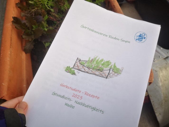Viertens – Begeisterung wecken und gesunde Gewohnheiten fördern. Zu diesem Zweck wurde eine Kostprobe für die Kinder vorbereitet und ein Heft mit Salatrezepten verteilt, die man den ganzen Winter über daheim leicht zubereiten kann.