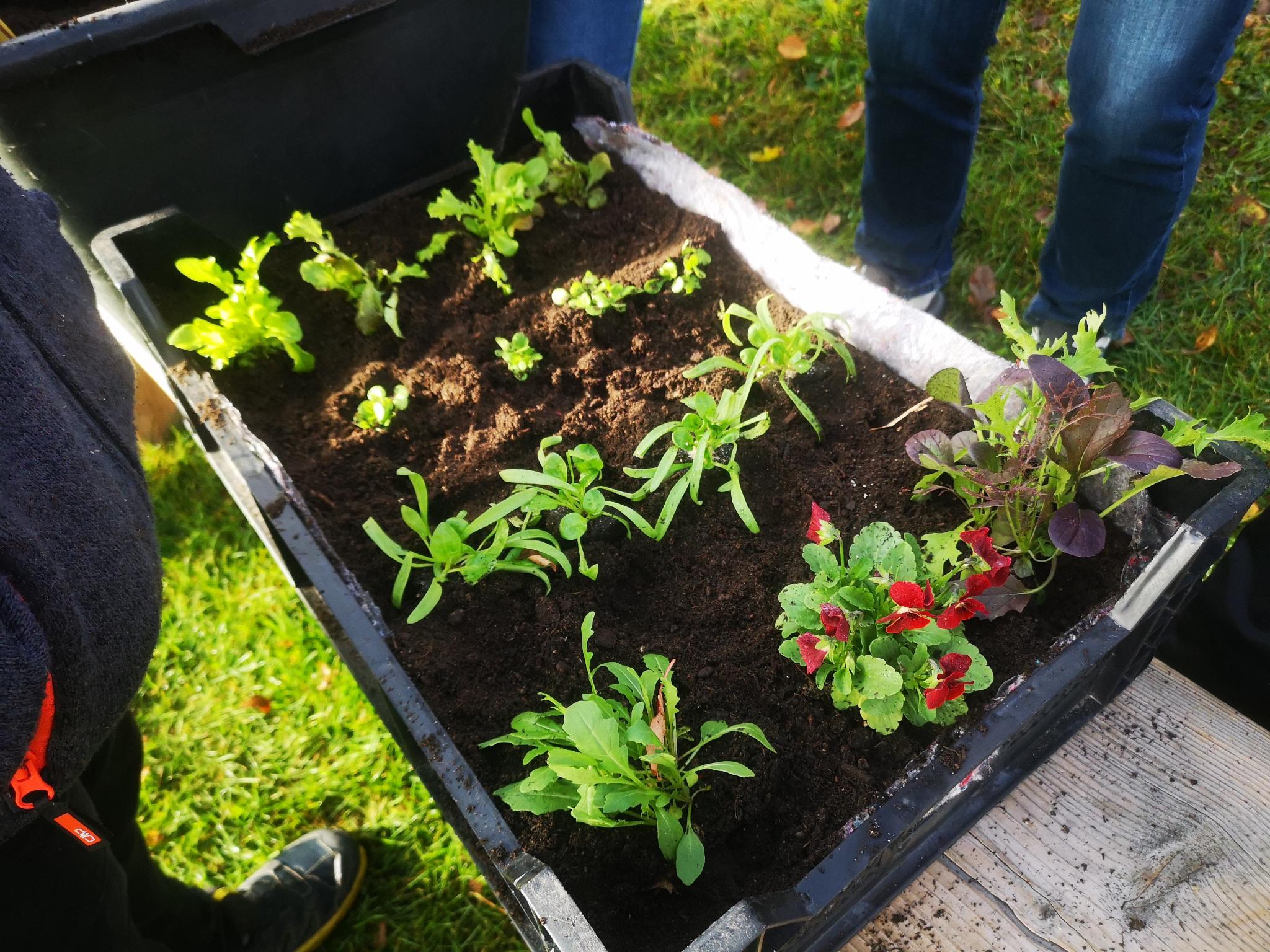 Die Kinder durften kleine Hochbeete mit Erde füllen und Salat pflanzen. In den Gesprächen vorher bestätigten viele, dass ihre Familien Hochbeete haben und dass sie Salat gern mögen. Das hat uns natürlich sehr gefreut zu hören!