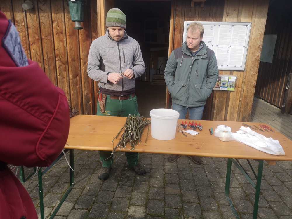 Am 9. März fand im Kreislehrgarten am Schloss Amerang eine weiterer Veredlungskurs statt. Es war ein produktiver Vormittag unter der Leitung von Daniel Richter und Martin Landes, Fachberater des Kreisverbands Rosenheim.