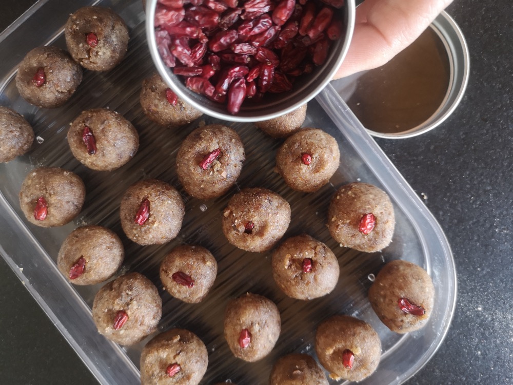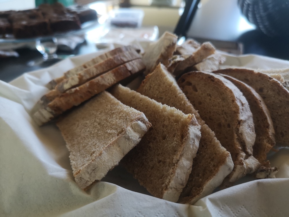 Anschließend gab es eine Brotzeit mit selbstgebackenem Brot, Löwenzahn-Butter (das Rezept hier), Dattel Ballen mit Berberitzebeeren sowie Saft von Quitten und Johannisbeeren und natürlich Kuchen.