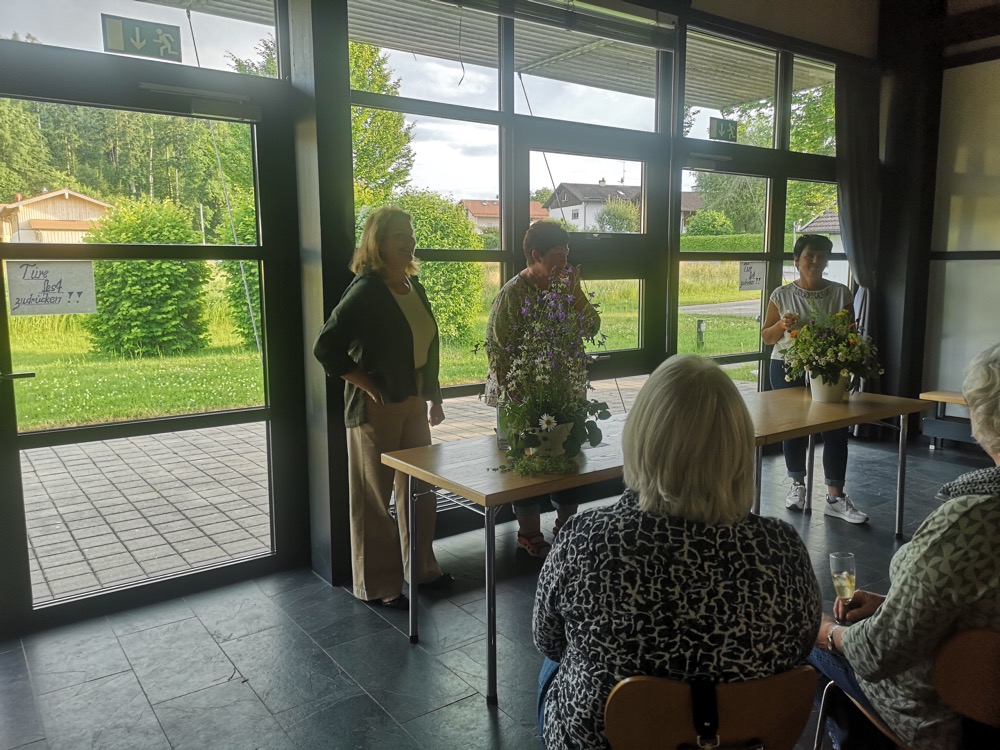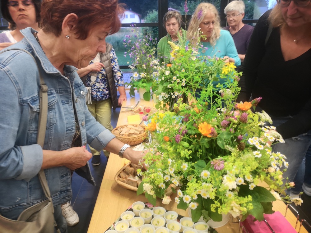 Nach der Begrüßung der Referentin, Rosmarie Pöschel aus Albaching, genossen die Teilnehmerinnen einen Aperitif, der von den Teams der Frauengemeinschaft und des Gartenbauvereins serviert wurde.