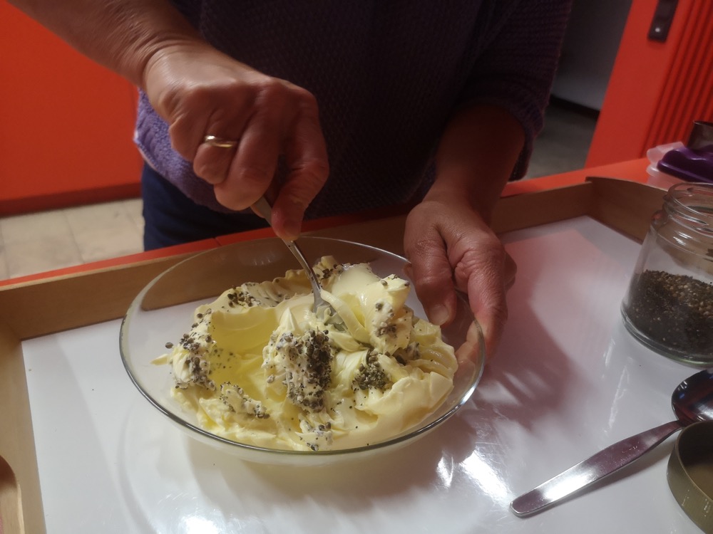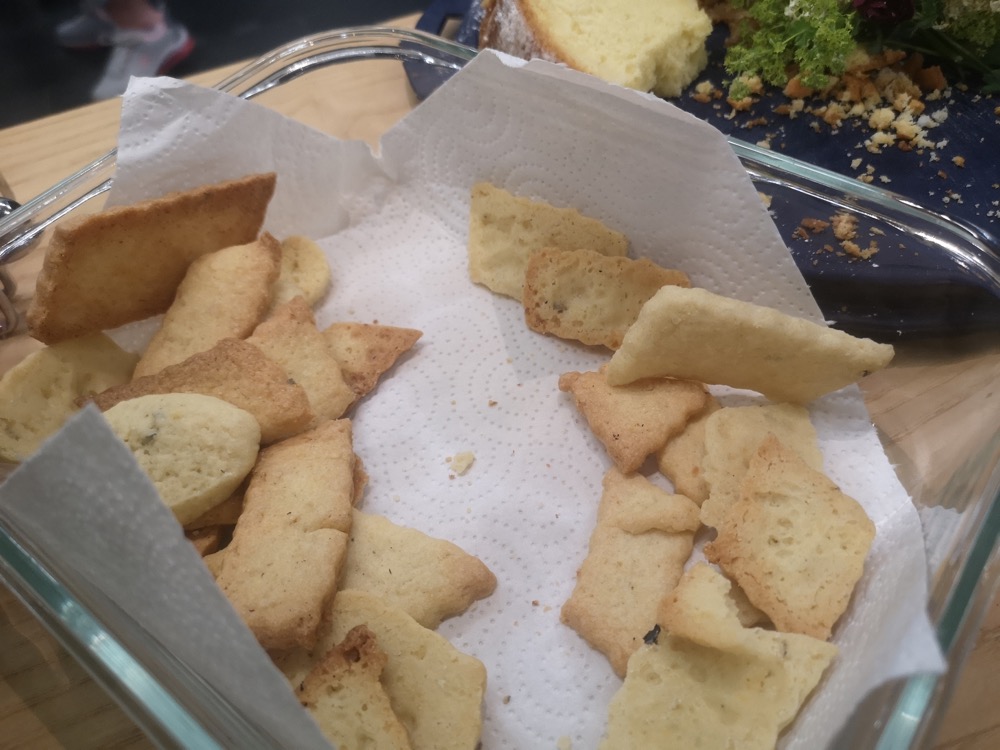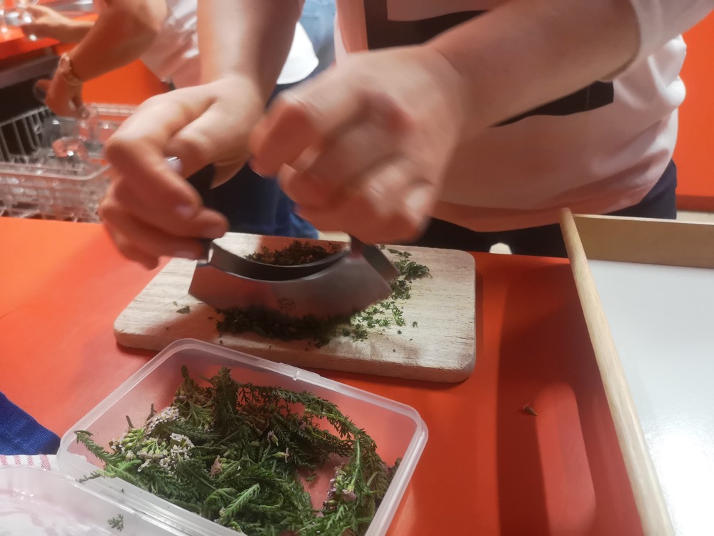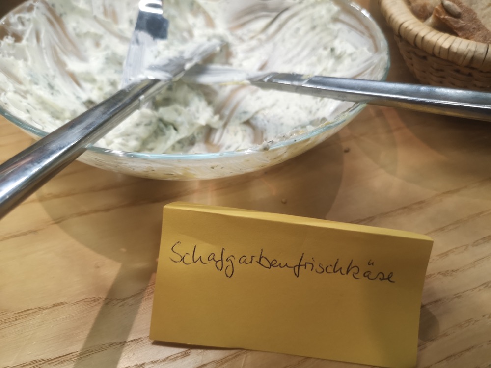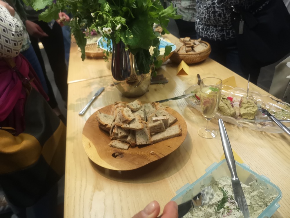 Die Vielfalt und der Reichtum der Wildkräuter wurde bei der Verkostung im Anschluss an den Vortrag ersichtlich. Zu schmecken und zu sehen gab es Kräuter in Form von Kräckern, Knäckebrot, Kuchen, Aperitif, Frischkäse, Käsecreme, Quark, Butter, Sirup, Limonade, Kekse. Natürlich in klassischer Zubereitung als Tee, aber auch Eis, Dips, Smoothies, Pestos, etc.