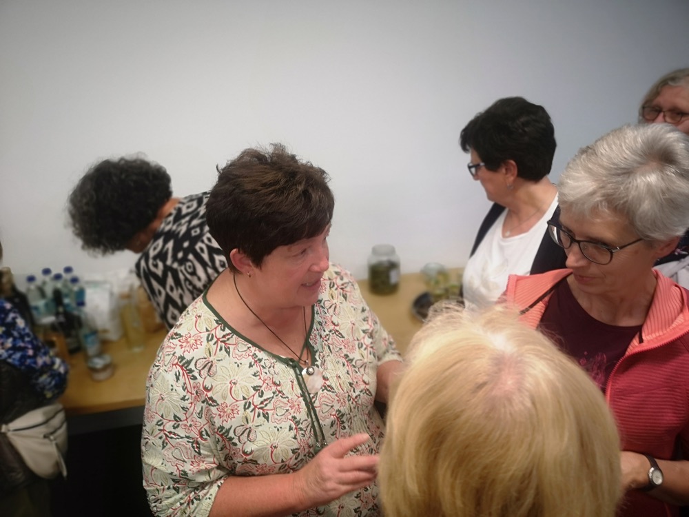 Die Referentin sprach über die Besonderheiten der verschiedenen Kräuter und die Bedeutung für die Frauen. Sie erklärte, dass die Verbindung zwischen Kräutern und Frauen auf verschiedene Dinge zurückzuführen sei: Die Stärke der Frau, die weibliche Gesundheit und die symbolische Bedeutung für Schönheit und Weiblichkeit.