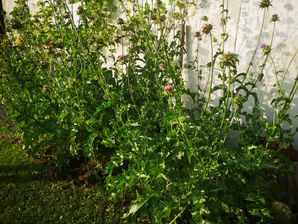 An den weißen Wänden wurden Gemüse wie Tomaten, Chilis, Paprika neben Wildblumen und Heilpflanzen – z.B. Mariendistel – angeordnet.