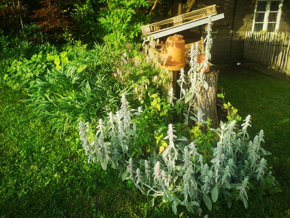Die Stauden sind an den Wänden entlang angeordnet, die in der Nacht die gespeicherte Wärme erhalten. Unter Bäumen wurden Stauden und Sträucher gewählt, die robust sind und der Wurzelkonkurrenz gut überstehen. Sie sind nicht alle einheimisch, obwohl lokal angepassten Sorten der Vorzug gegeben wird.