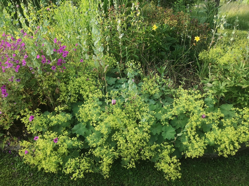 Es wurde ein aktuelles Beispiel eines 6 Monate alten Staudenbeetes gezeigt, das eine gute Anpassung beweist, wenn die Auswahl der Pflanzen richtig ist.