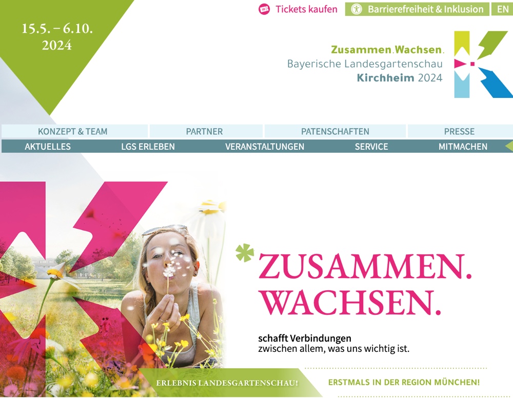 Unter dem Motto – Zusammen.Wachsen. – feiern wir im neuen Ortspark zwischen Kirchheim und Heimstetten auf knapp 14 Hektar Fläche 145 Tage Landesgartenschau! Mehr als 90 Ausstellungsbeiträge und über 3.500 Veranstaltungen warten auf Sie.