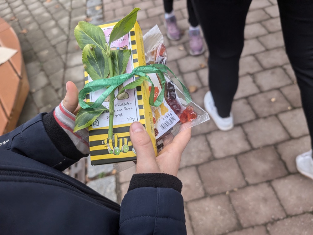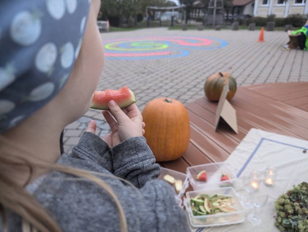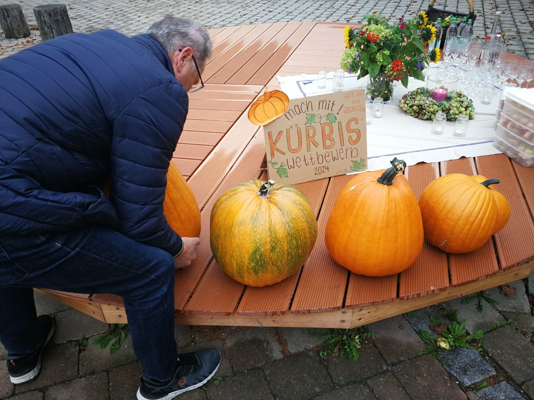 Im Pausenhof der Grundschule wurden die größten Kürbisse präsentiert, dazu gab es Holunderschorle und ein kleines Büffet. Nicht zu vergessen Kürbis-Urkunden und schöne Präsente für die Kinder, die so freudig mitgemacht haben.