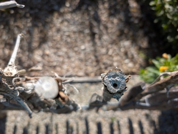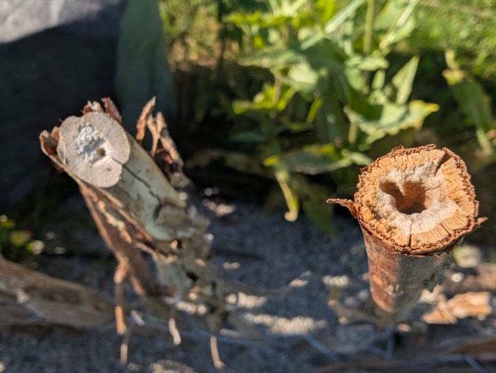 Sie empfehlen die Stängel an Zaun, aber nicht in der Nähe von Wildbienenhotel.